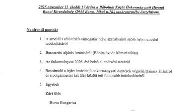 - Meghívó Bana Község Önkormányzatának 2025. november 11-én tartandó képviselő-testületi ülésére